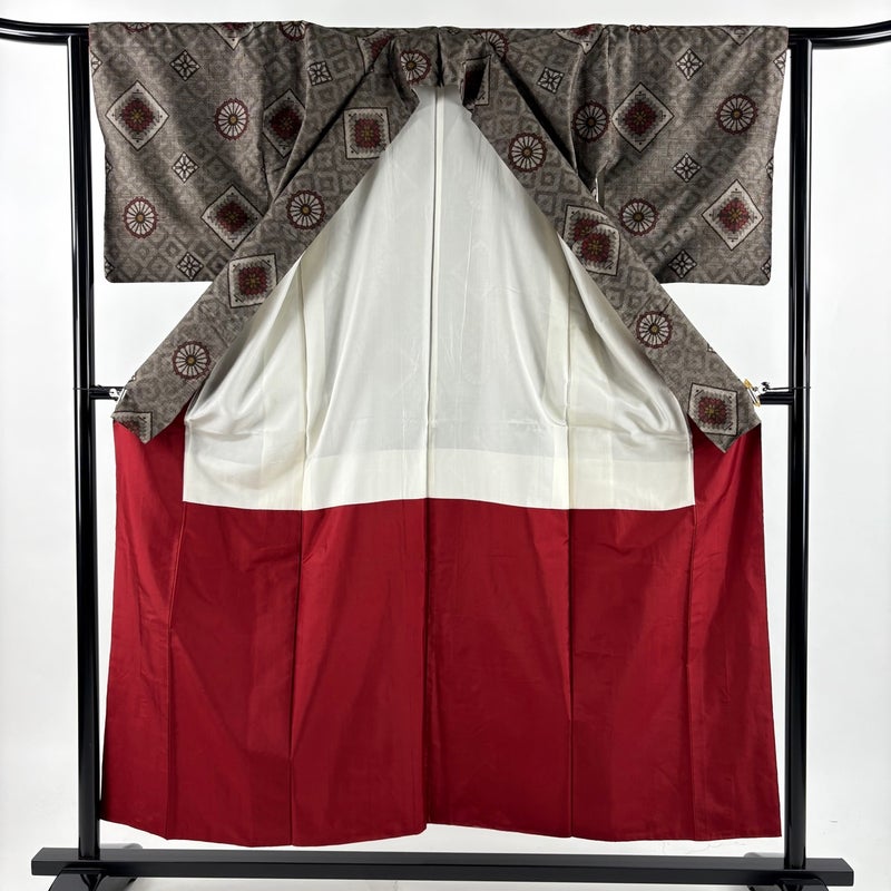 【着物ランク】名品 【素材】正絹 【身丈】約154cm 【裄丈】約62.5cm 【袖丈】約46.5cm 【袖幅】約32.5cm 【前幅】約23cm 【後幅】約28.5cm 【サイズ】S 【着物仕立て】袷 【着用時期】10~5月 【状態ランク】ランクB 【着物着用シーン】気軽なパーティー、観劇、食事会、正月、気軽なお茶会、街着