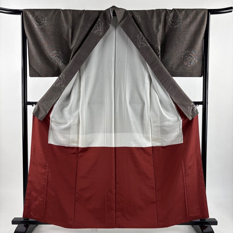 【着物ランク】名品 【素材】正絹 【身丈】約161.5cm 【裄丈】約65.5cm 【袖丈】約48cm 【袖幅】約34cm 【前幅】約24.5cm 【後幅】約30.5cm 【サイズ】M 【着物仕立て】袷 【着用時期】10~5月 【状態ランク】ランクB 【着物着用シーン】気軽なパーティー、観劇、食事会、正月、気軽なお茶会、街着