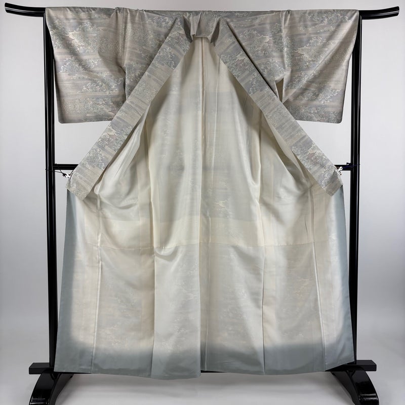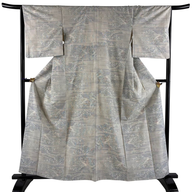 【着物ランク】名品 【素材】正絹 【身丈】約160.5cm 【裄丈】約66cm 【袖丈】約48.5cm 【袖幅】約33.5cm 【前幅】約26cm 【後幅】約31cm 【サイズ】M 【着物仕立て】袷 【着用時期】10~5月 【状態ランク】ランクB 【着物着用シーン】気軽なパーティー、観劇、食事会、正月、気軽なお茶会、街着