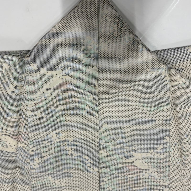 【紬】 灰色系 灰白 名品 B 約160cm~約169cm 裄丈66cm (M)size 袖丈48cm 9990-29990 二万以下
