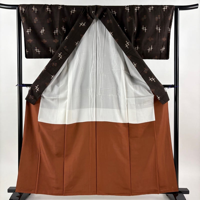 【紬】 茶系 焦茶色 逸品 B 約160cm~約169cm 裄丈63cm-64cm (S)size 袖丈46cm以下 30000- 五万以下