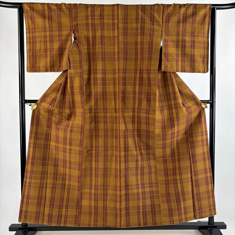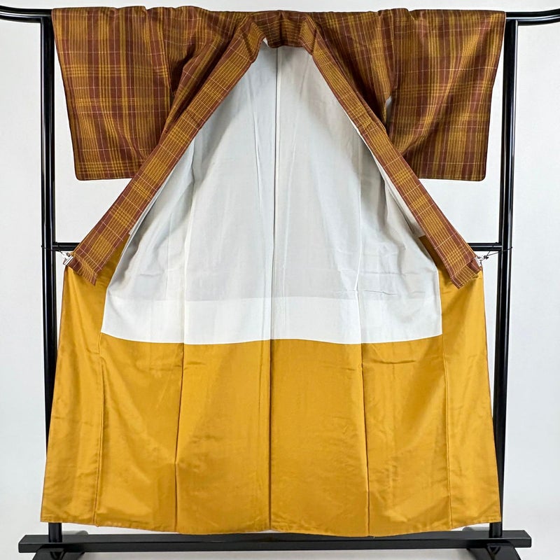 【紬】 茶系 茶色 逸品 A 約150cm~約159cm 裄丈63cm-64cm (S)size 袖丈48cm 30000- 美品 五万以上
