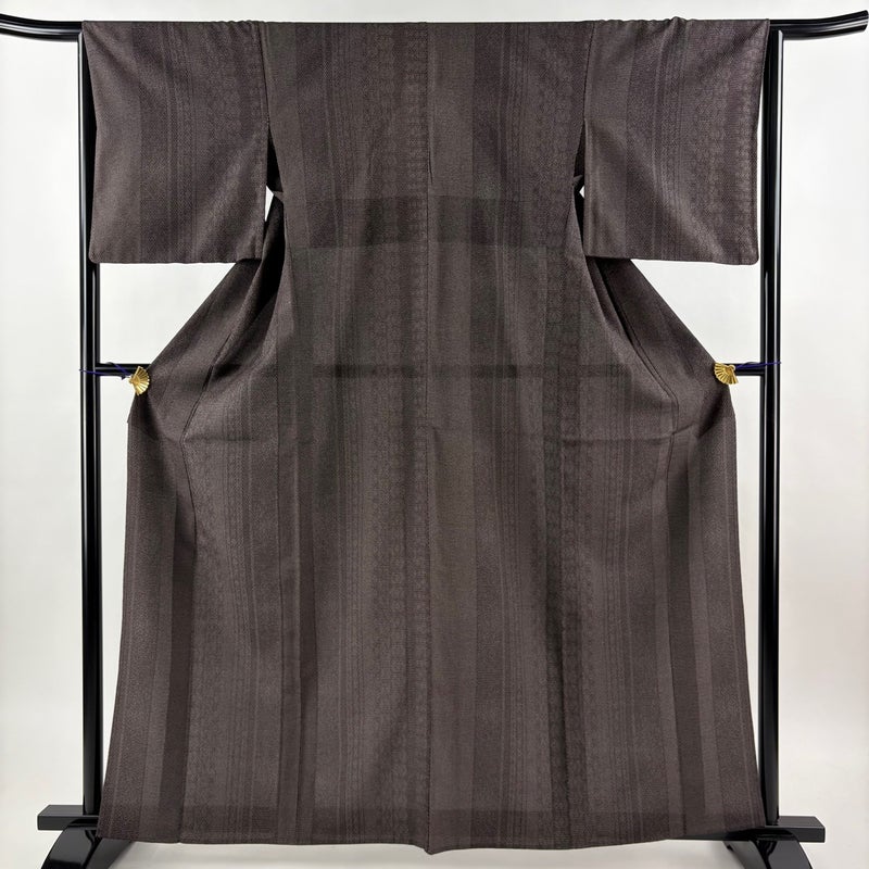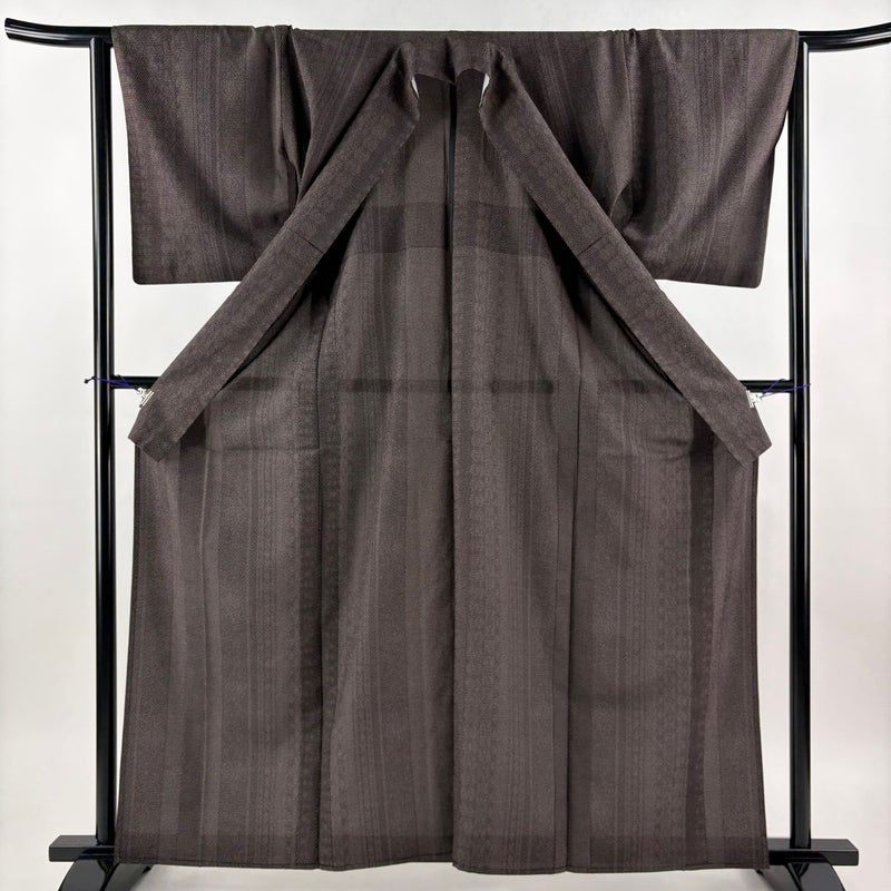 【紬】 茶系 焦茶色 名品 B 約160cm~約169cm 裄丈63cm-64cm (M)size 袖丈49cm 9990-29990 五万以下
