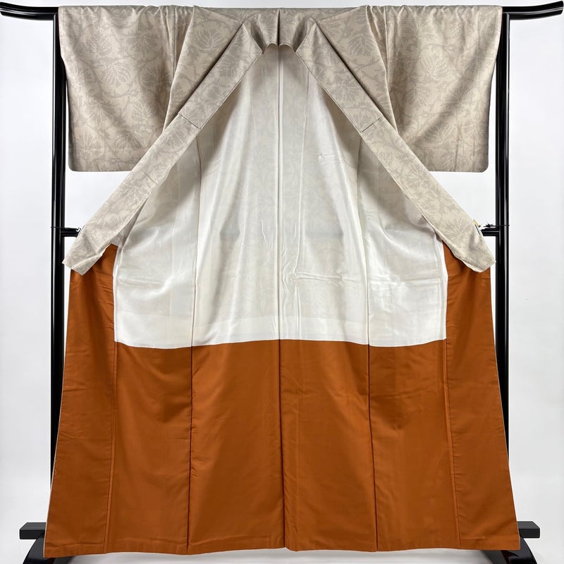 【着物ランク】秀品 【素材】正絹 【身丈】約165cm 【裄丈】約66cm 【袖丈】約50cm 【袖幅】約34.5cm 【前幅】約24cm 【後幅】約29cm 【サイズ】M 【着物仕立て】袷 【着用時期】10~5月 【状態ランク】ランクC 【着物着用シーン】気軽なパーティー、観劇、食事会、正月、気軽なお茶会、街着