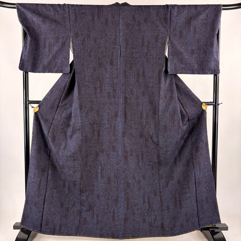 【紬】 青系 濃紺 秀品 A 約160cm~約169cm 裄丈69cm以上 (L)size 袖丈48cm 7990-9980 美品 二万以下