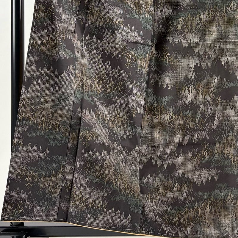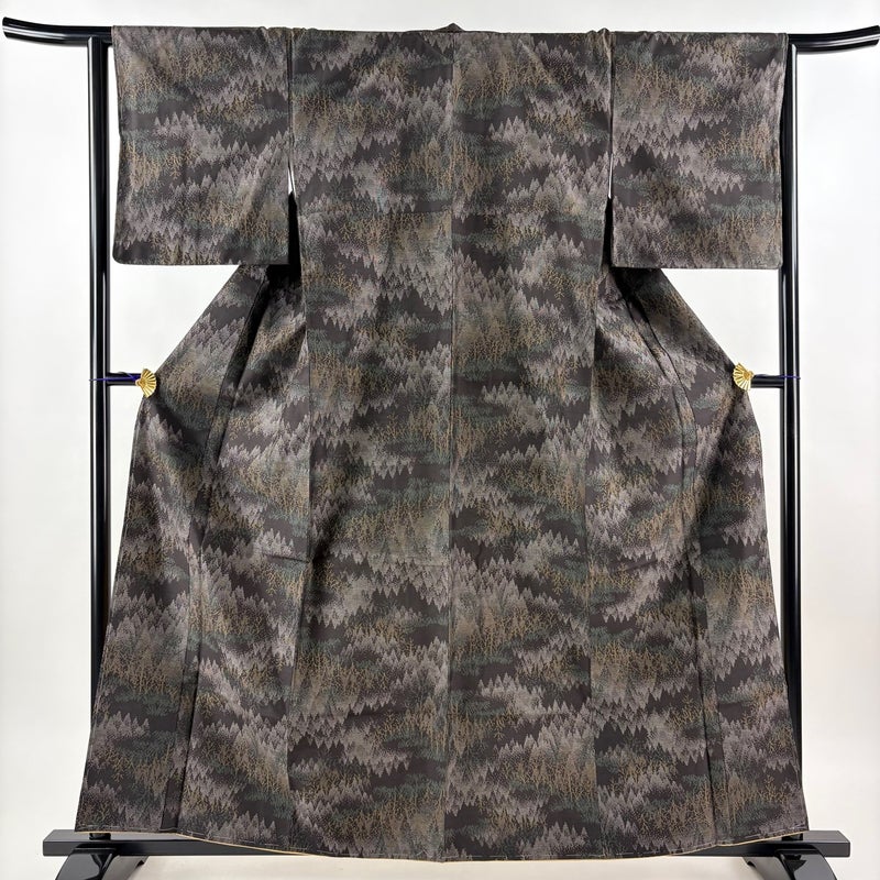 【着物ランク】秀品 【素材】正絹 【身丈】約161cm 【裄丈】約64cm 【袖丈】約47cm 【袖幅】約32cm 【前幅】約24.5cm 【後幅】約29.5cm 【サイズ】M 【着物仕立て】袷 【着用時期】10~5月 【状態ランク】ランクB 【着物着用シーン】気軽なパーティー、観劇、食事会、正月、気軽なお茶会、街着