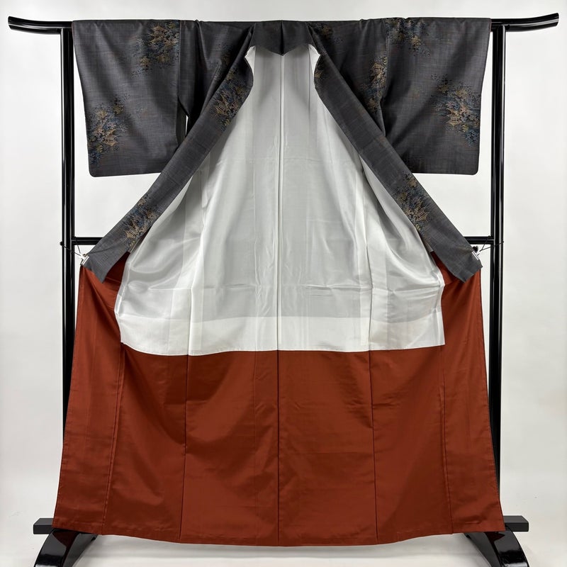 【着物ランク】秀品 【素材】正絹 【身丈】約165.5cm 【裄丈】約63.5cm 【袖丈】約47.5cm 【袖幅】約32.5cm 【前幅】約23.5cm 【後幅】約30.5cm 【サイズ】S 【着物仕立て】袷 【着用時期】10~5月 【状態ランク】ランクA 【着物着用シーン】気軽なパーティー、観劇、食事会、正月、気軽なお茶会、街着