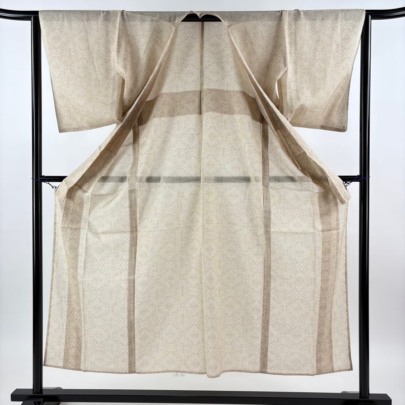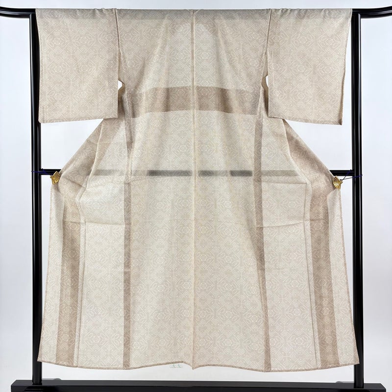 【紬】 白系 ベージュ 秀品 A 約150cm~約159cm 裄丈63cm-64cm (M)size 袖丈48cm 9990-29990 美品 二万以下