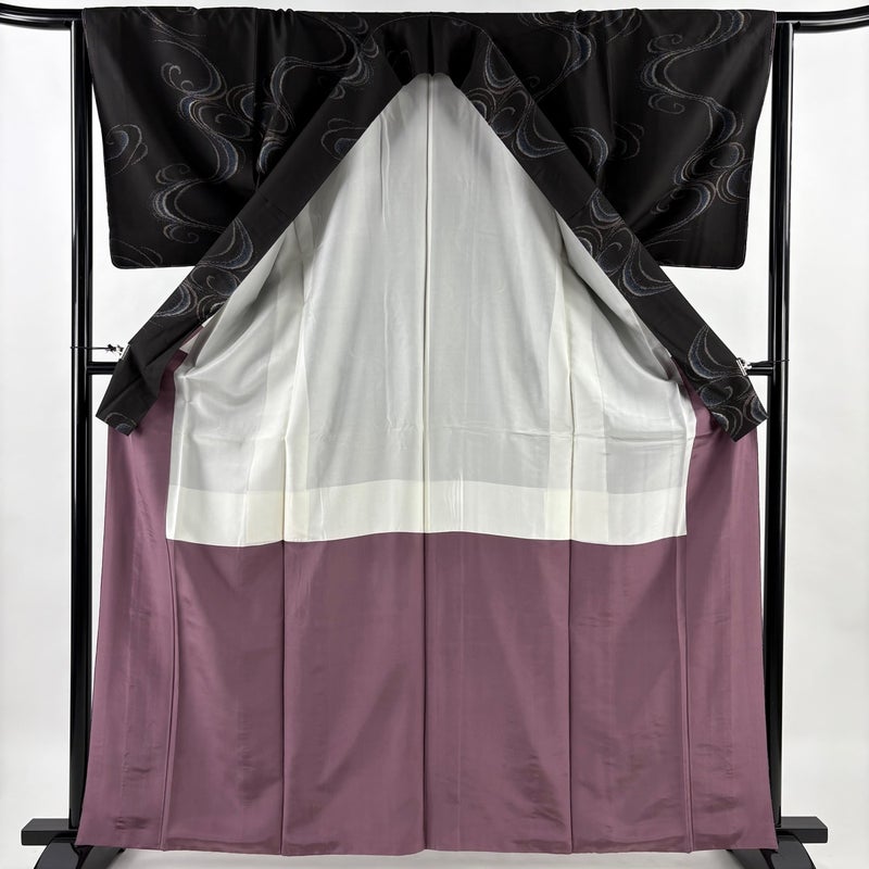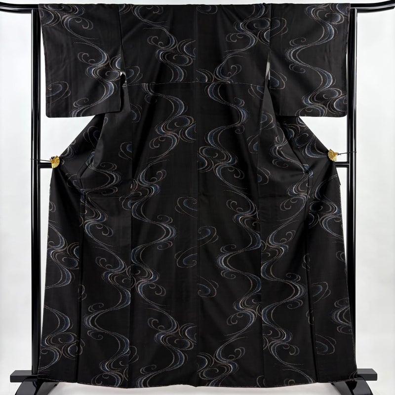 【紬】 黒系 墨色 秀品 B 約160cm~約169cm 裄丈63cm-64cm (M)size 袖丈48cm 4000-7980 二万以下