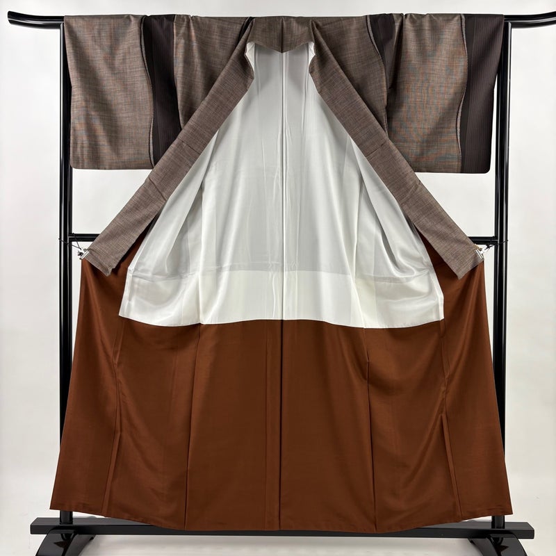 【紬】 茶系 焦茶色 秀品 B 約150cm~約159cm 裄丈66cm (M)size 袖丈47cm 4000-7980 二万以下