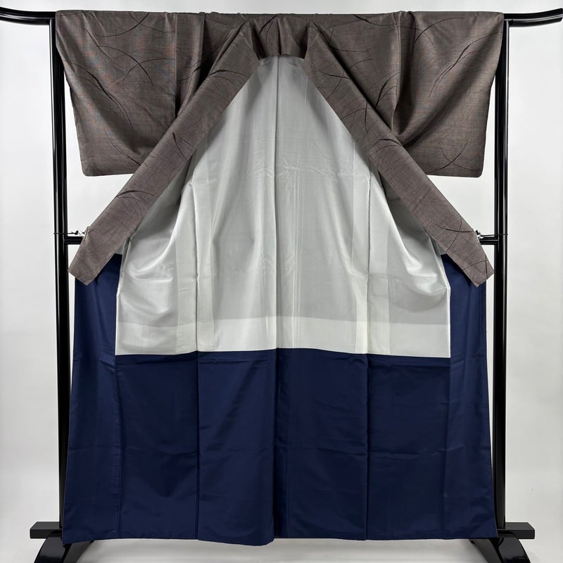 【紬】 灰色系 灰茶 秀品 B 約160cm~約169cm 裄丈67cm-68cm (M)size 袖丈48cm 4000-7980 二万以下