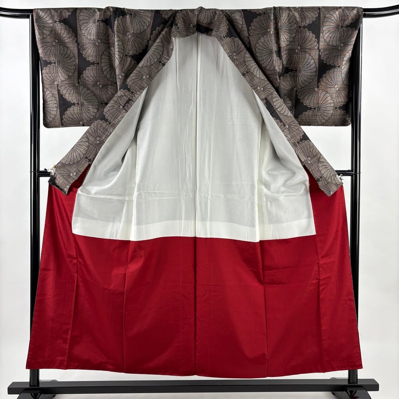 【着物ランク】秀品 【素材】正絹 【身丈】約156cm 【裄丈】約67cm 【袖丈】約49cm 【袖幅】約33cm 【前幅】約24.5cm 【後幅】約30.5cm 【サイズ】M 【着物仕立て】袷 【着用時期】10~5月 【状態ランク】ランクA 【着物着用シーン】気軽なパーティー、観劇、食事会、正月、気軽なお茶会、街着
