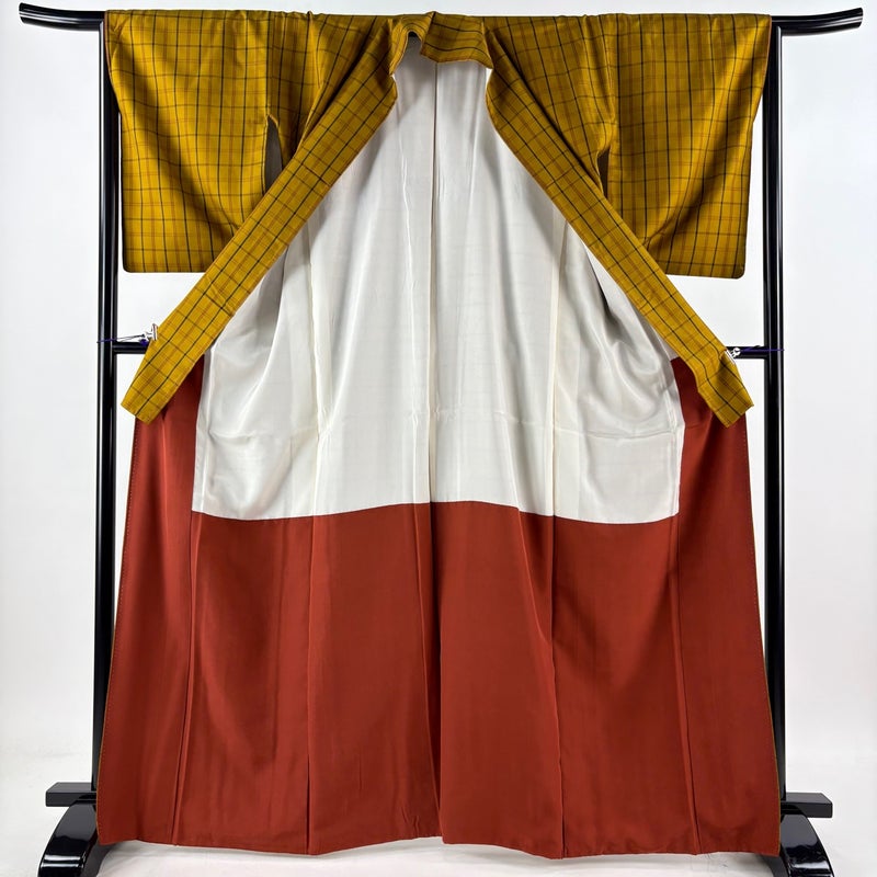 【紬】 黄色系 山吹茶色 逸品 B 約160cm~約169cm 裄丈66cm (M)size 袖丈50cm-60cm 30000- 五万以下