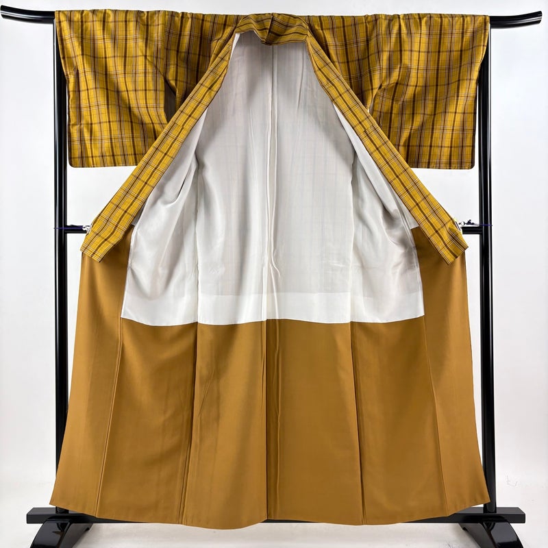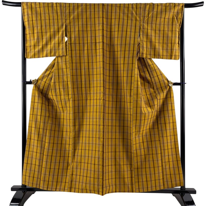 【紬】 黄色系 黄土色 逸品 B 約150cm~約159cm 裄丈67cm-68cm (M)size 袖丈49cm 30000- 五万以下