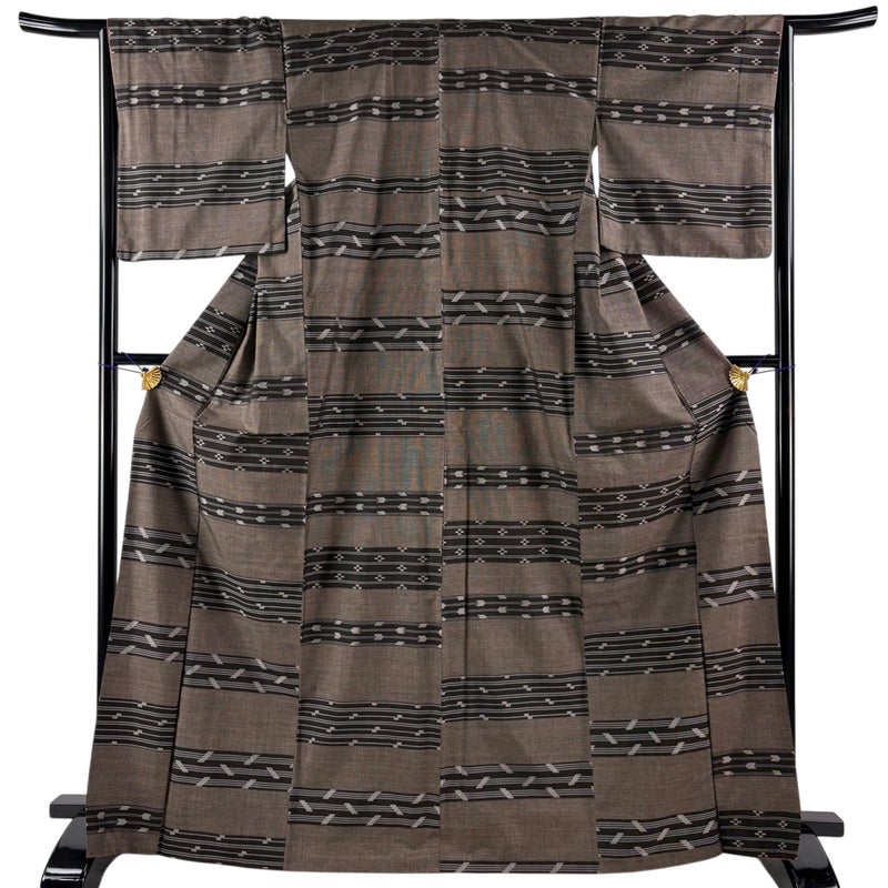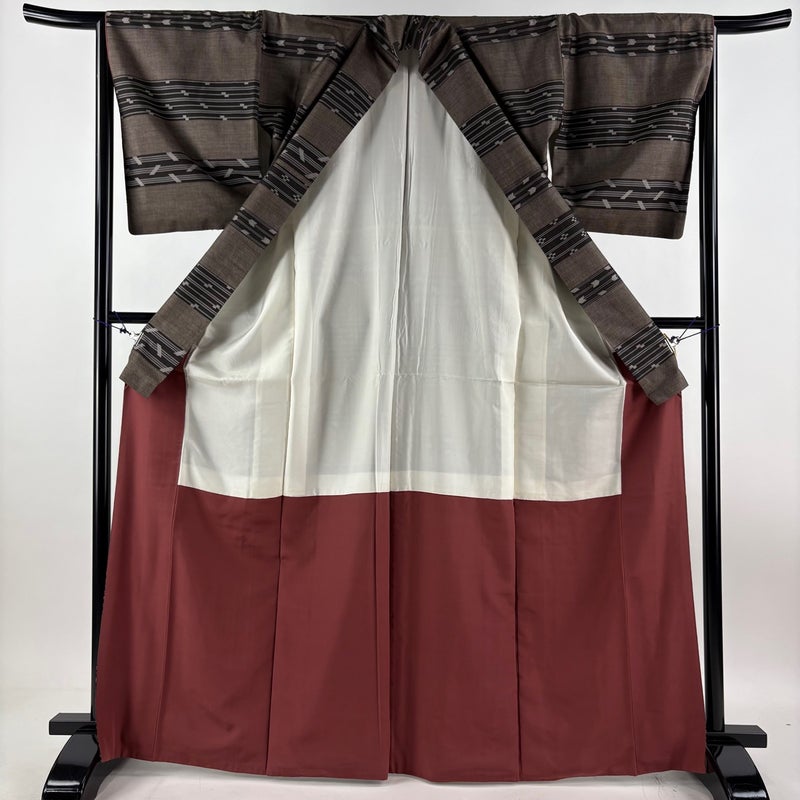 【紬】 茶系 焦茶色 秀品 B 約160cm~約169cm 裄丈63cm-64cm (M)size 袖丈49cm 4000-7980 二万以下