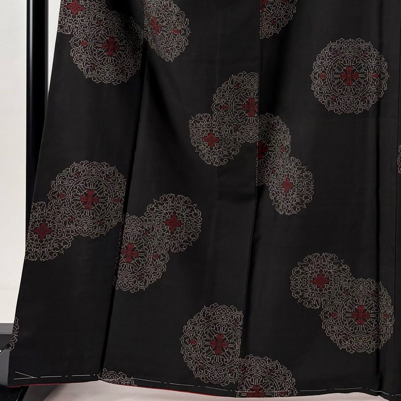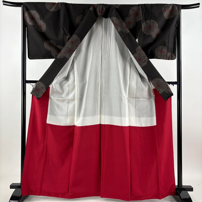【着物ランク】秀品 【素材】正絹 【身丈】約167cm 【裄丈】約66cm 【袖丈】約49.5cm 【袖幅】約34.5cm 【前幅】約24.5cm 【後幅】約28.5cm 【サイズ】M 【着物仕立て】袷 【着用時期】10~5月 【状態ランク】ランクB 【着物着用シーン】気軽なパーティー、観劇、食事会、正月、気軽なお茶会、街着