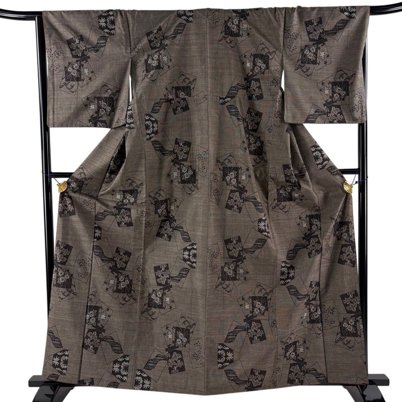 【着物ランク】秀品 【素材】正絹 【身丈】約162.5cm 【裄丈】約67cm 【袖丈】約49.5cm 【袖幅】約34.5cm 【前幅】約22cm 【後幅】約30.5cm 【サイズ】M 【着物仕立て】袷 【着用時期】10~5月 【状態ランク】ランクA 【着物着用シーン】気軽なパーティー、観劇、食事会、正月、気軽なお茶会、街着