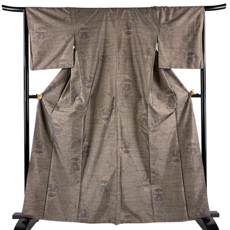 【着物ランク】秀品 【素材】正絹 【身丈】約162cm 【裄丈】約66.5cm 【袖丈】約49cm 【袖幅】約33.5cm 【前幅】約24.5cm 【後幅】約29.5cm 【サイズ】M 【着物仕立て】袷 【着用時期】10~5月 【状態ランク】ランクB 【着物着用シーン】気軽なパーティー、観劇、食事会、正月、気軽なお茶会、街着