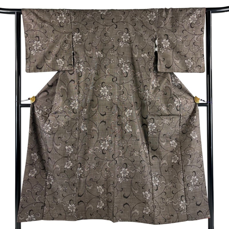 【着物ランク】秀品 【素材】正絹 【身丈】約151cm 【裄丈】約63cm 【袖丈】約47cm 【袖幅】約33cm 【前幅】約23.5cm 【後幅】約29cm 【サイズ】S 【着物仕立て】袷 【着用時期】10~5月 【状態ランク】ランクA 【着物着用シーン】気軽なパーティー、観劇、食事会、正月、気軽なお茶会、街着
