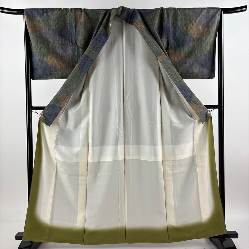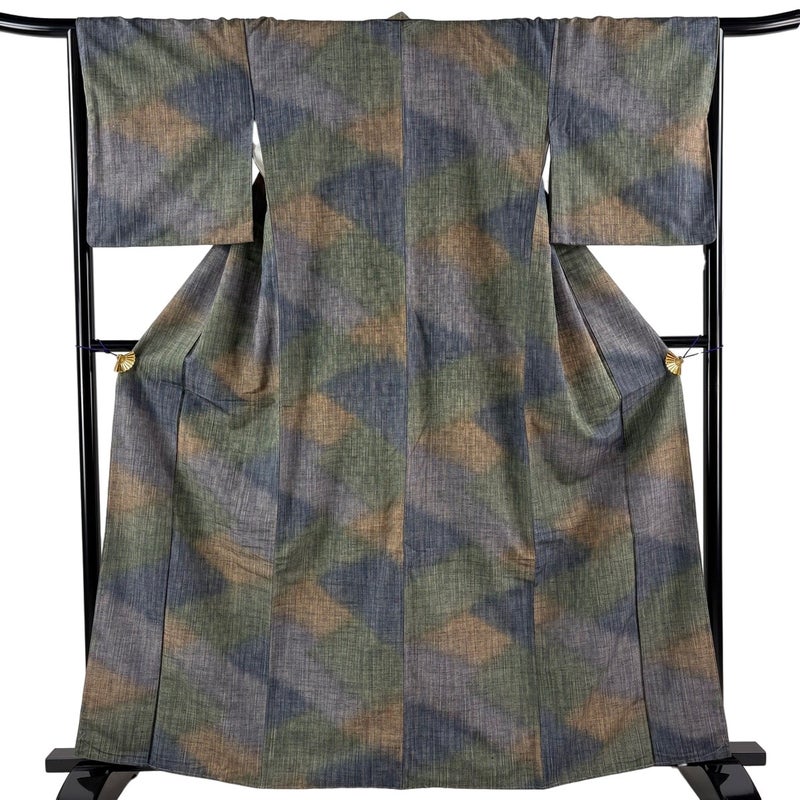 普段着やおしゃれ着として人気の紬でございます。 元々は日常着として着用していたので、その土地の風土に合った様々な種類がある素敵な一品です。 ※身丈・裄丈の縫込みの長さは測っておりません。 表地所々にシワがございます。 衿裏所々と胴裏所々と八掛所々にシミ、衿裏と胴裏に黄変がございます。 リユース品としては良い状態で、まだまだご活用頂けると思われます。 ※なお、厳しく商品の状態確認を行っておりますが、記載の汚れ以外にも見落とし箇所がある可能性がある旨ご了承いただけますと幸いです。 沢山の商品の中からご覧いただき誠にありがとうございます。