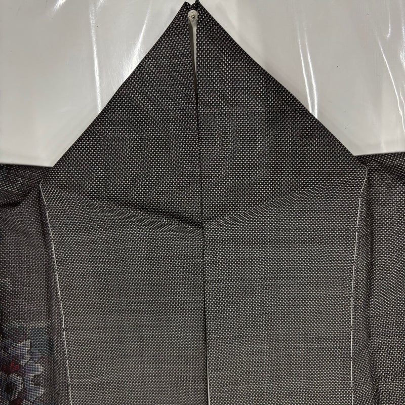【紬】 灰色系 灰紫 秀品 A 約150cm~約159cm 裄丈63cm-64cm (M)size 袖丈50cm-60cm 7990-9980 美品 二万以下
