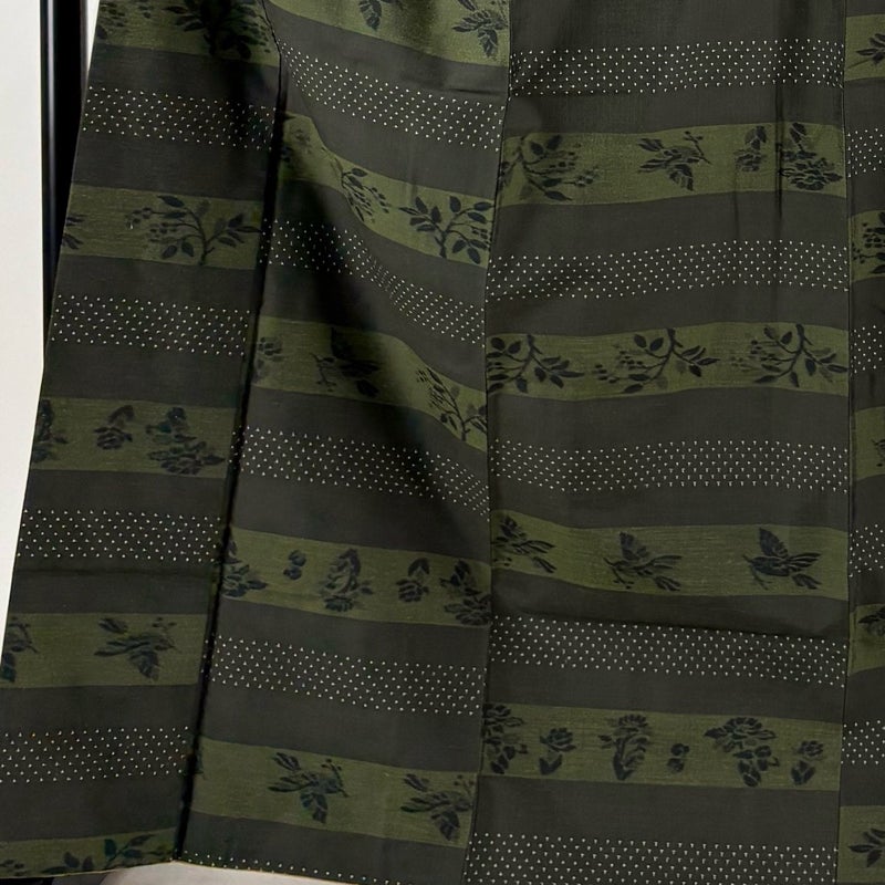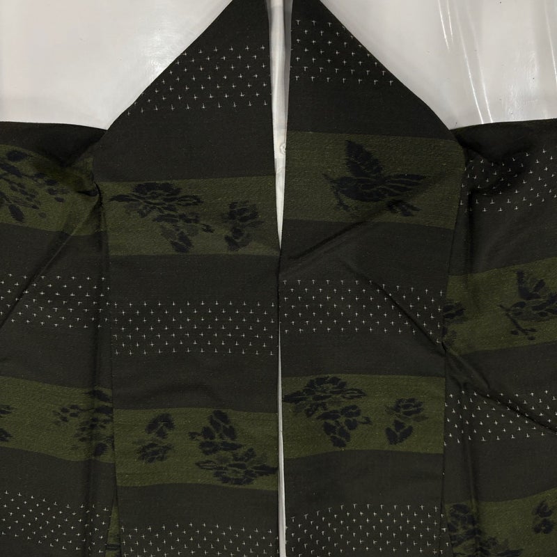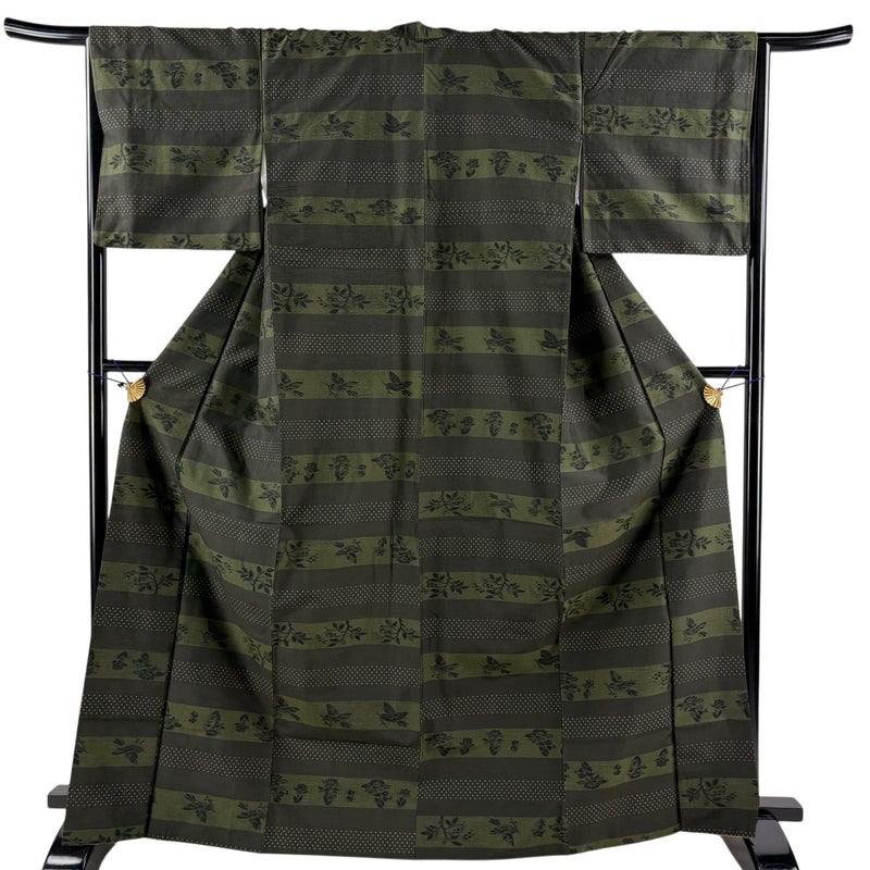 【紬】 緑系 深緑 秀品 A 約160cm~約169cm 裄丈65cm (M)size 袖丈46cm以下 7990-9980 美品 二万以下