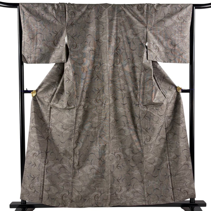 【紬】 灰色系 灰茶 秀品 A 約150cm~約159cm 裄丈66cm (M)size 袖丈47cm 7990-9980 美品 二万以下