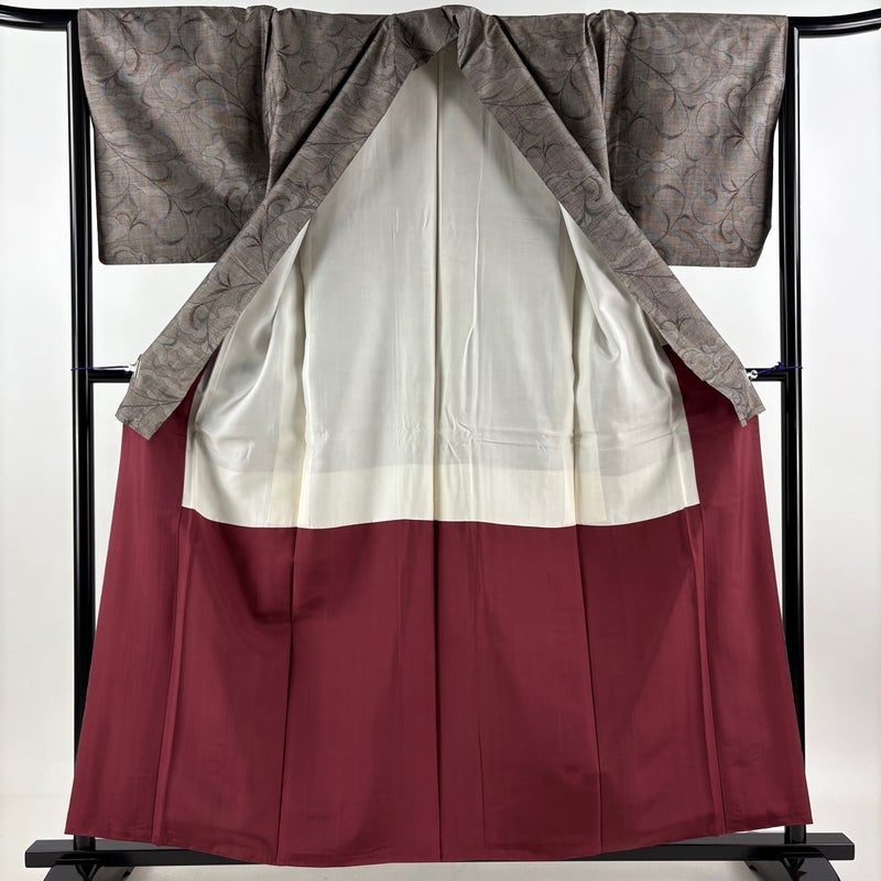 【着物ランク】秀品 【素材】正絹 【身丈】約159cm 【裄丈】約66cm 【袖丈】約47.5cm 【袖幅】約33.5cm 【前幅】約24cm 【後幅】約30cm 【サイズ】M 【着物仕立て】袷 【着用時期】10~5月 【状態ランク】ランクA 【着物着用シーン】気軽なパーティー、観劇、食事会、正月、気軽なお茶会、街着