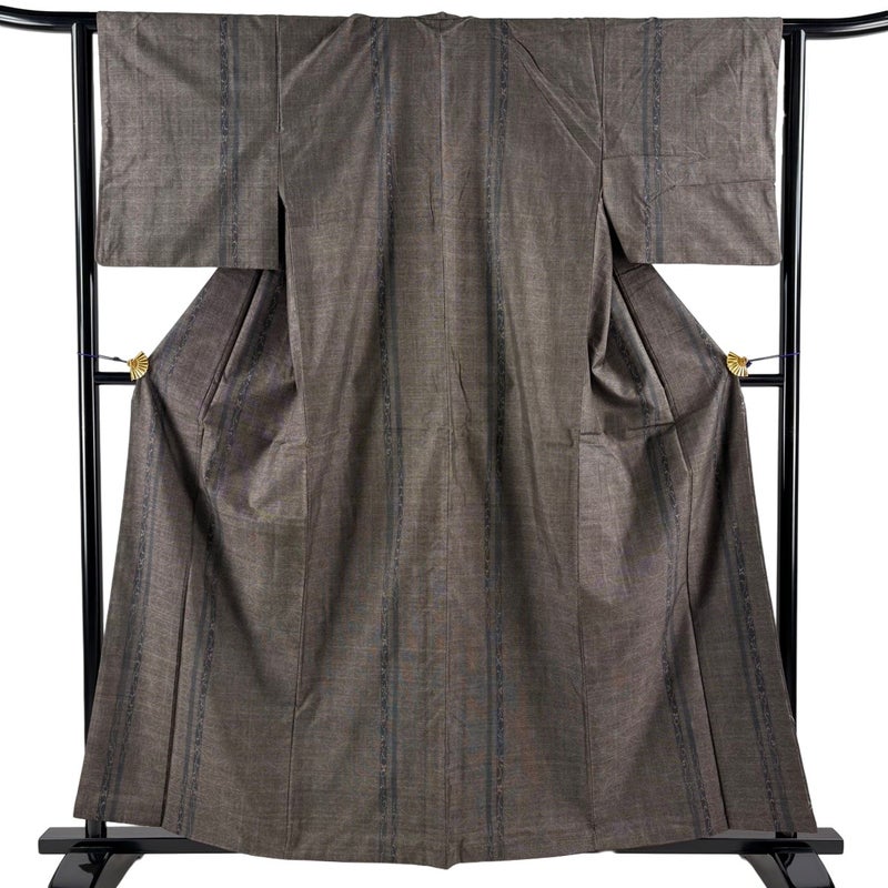 普段着やおしゃれ着として人気の紬でございます。 元々は日常着として着用していたので、その土地の風土に合った様々な種類がある素敵な一品です。 ※身丈・裄丈の縫込みの長さは測っておりません。 衿周りや両袖口中に薄汚れ、表地所々にシワがございます。 衿裏に薄いシミがございます。 リユース品としては良い状態で、まだまだご活用頂けると思われます。 ※なお、厳しく商品の状態確認を行っておりますが、記載の汚れ以外にも見落とし箇所がある可能性がある旨ご了承いただけますと幸いです。 沢山の商品の中からご覧いただき誠にありがとうございます。