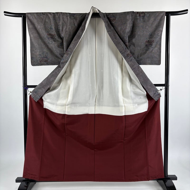【着物ランク】秀品 【素材】正絹 【身丈】約163cm 【裄丈】約63.5cm 【袖丈】約49cm 【袖幅】約32.5cm 【前幅】約23cm 【後幅】約29cm 【サイズ】S 【着物仕立て】袷 【着用時期】10~5月 【状態ランク】ランクA 【着物着用シーン】気軽なパーティー、観劇、食事会、正月、気軽なお茶会、街着