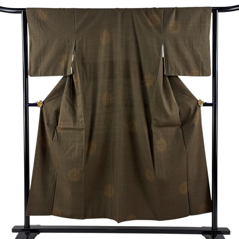 【紬】 茶系 茶緑色 秀品 B 約150cm~約159cm 裄丈63cm-64cm (M)size 袖丈49cm 4000-7980 二万以下