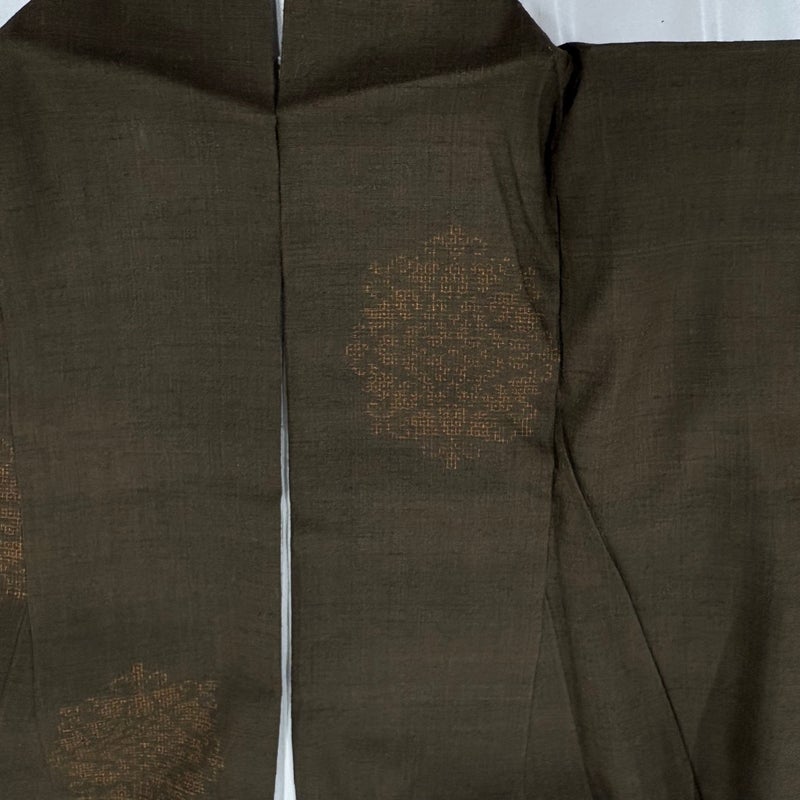 普段着やおしゃれ着として人気の紬でございます。 元々は日常着として着用していたので、その土地の風土に合った様々な種類がある素敵な一品です。 ※身丈・裄丈の縫込みの長さは測っておりません。 右衿にシミ、衿周りや両袖口中に薄汚れ、上前など表地所々にシワがございます。 リユース品としては良い状態で、まだまだご活用頂けると思われます。 ※なお、厳しく商品の状態確認を行っておりますが、記載の汚れ以外にも見落とし箇所がある可能性がある旨ご了承いただけますと幸いです。 沢山の商品の中からご覧いただき誠にありがとうございます。