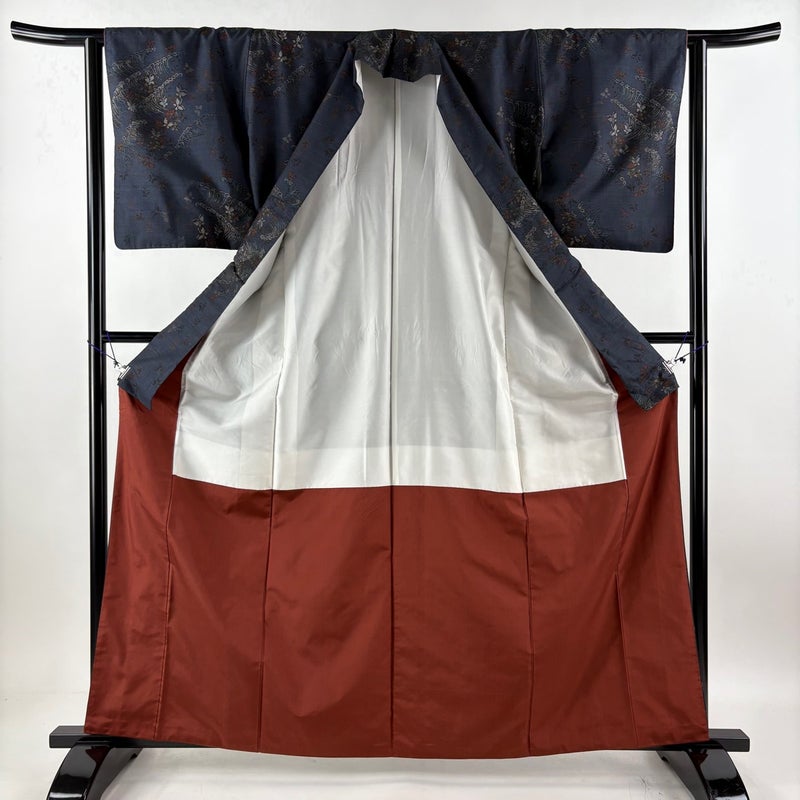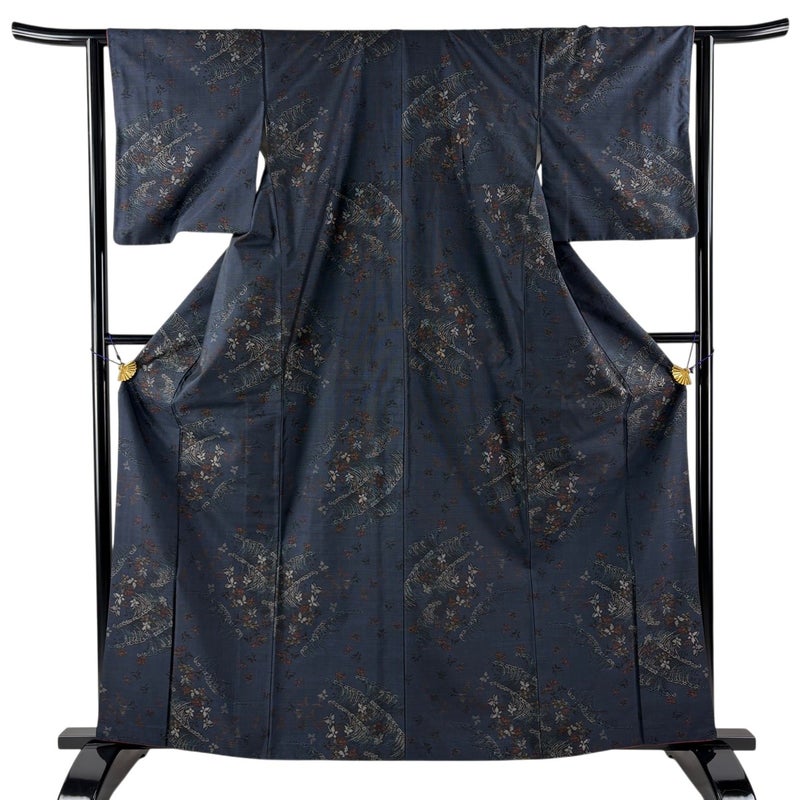 【着物ランク】秀品 【素材】正絹 【身丈】約162.5cm 【裄丈】約62cm 【袖丈】約49cm 【袖幅】約33cm 【前幅】約23cm 【後幅】約30cm 【サイズ】S 【着物仕立て】袷 【着用時期】10~5月 【状態ランク】ランクC 【着物着用シーン】気軽なパーティー、観劇、食事会、正月、気軽なお茶会、街着