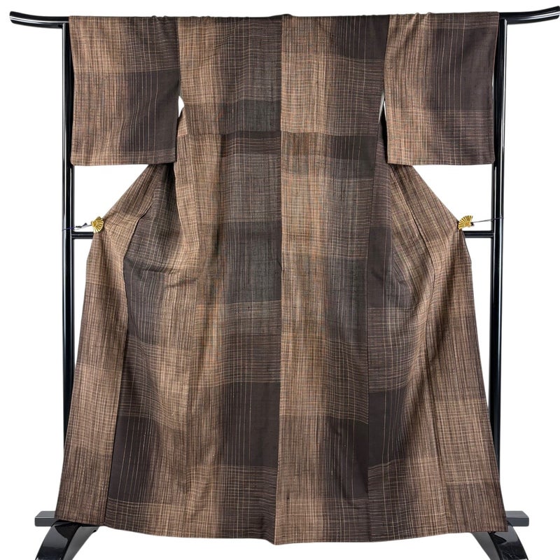 【紬】 茶系 焦茶色 秀品 B 約160cm~約169cm 裄丈65cm (M)size 袖丈47cm 4000-7980 二万以下