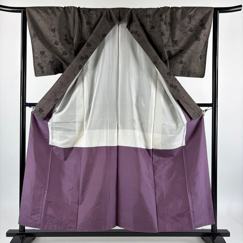 【紬】 茶系 焦茶色 秀品 A 約150cm~約159cm 裄丈65cm (M)size 袖丈48cm 7990-9980 美品 二万以下