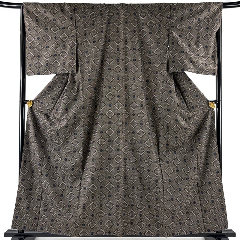 【着物ランク】名品 【素材】正絹 【身丈】約159cm 【裄丈】約67cm 【袖丈】約51cm 【袖幅】約34cm 【前幅】約27cm 【後幅】約31cm 【サイズ】M 【着物仕立て】袷 【着用時期】10~5月 【状態ランク】ランクB 【着物着用シーン】気軽なパーティー、観劇、食事会、正月、気軽なお茶会、街着