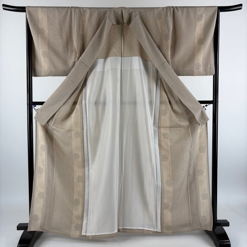【紬】 茶系 薄茶色 名品 A 約160cm~約169cm 裄丈66cm (M)size 袖丈49cm 9990-29990 美品 五万以下