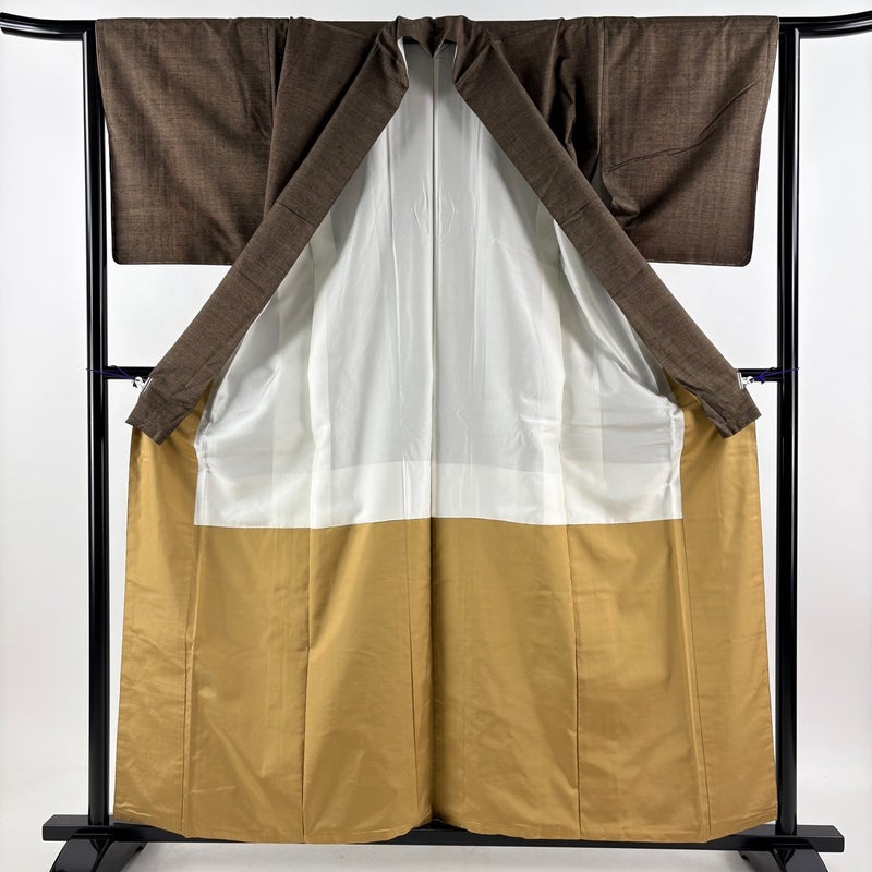 【紬】 茶系 焦茶色 逸品 A 約150cm~約159cm 裄丈63cm-64cm (M)size 袖丈46cm以下 30000- 美品 五万以上