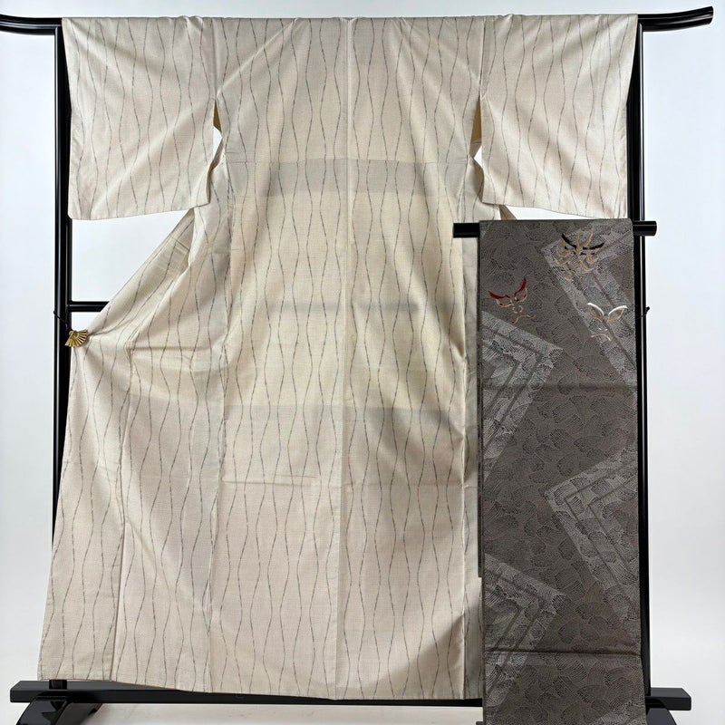 【紬】 白系 ベージュ 秀品 A 約160cm~約169cm 裄丈66cm (M)size 袖丈49cm 9990-29990 美品 五万以下