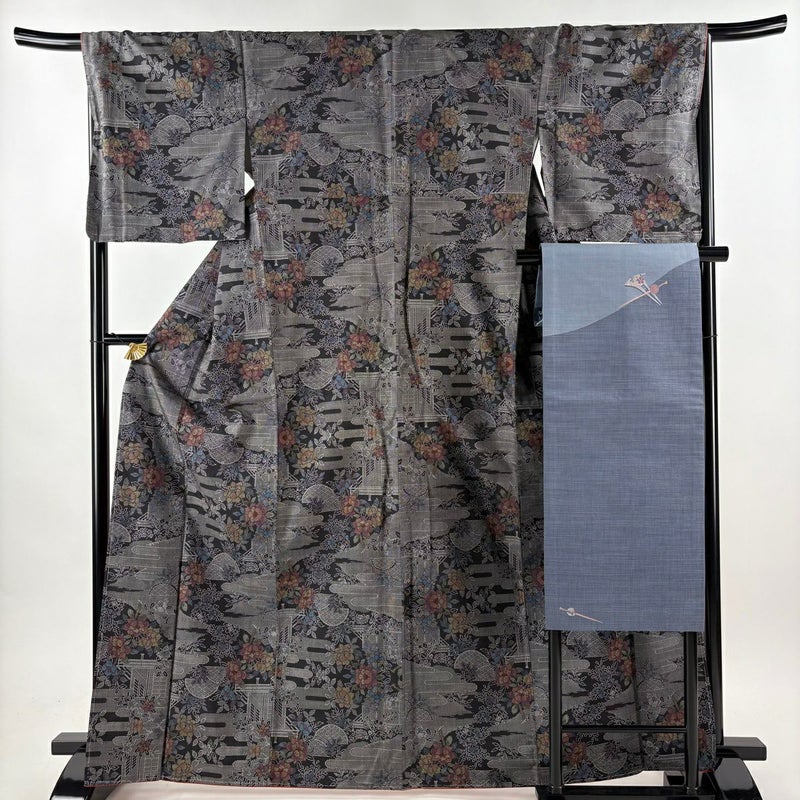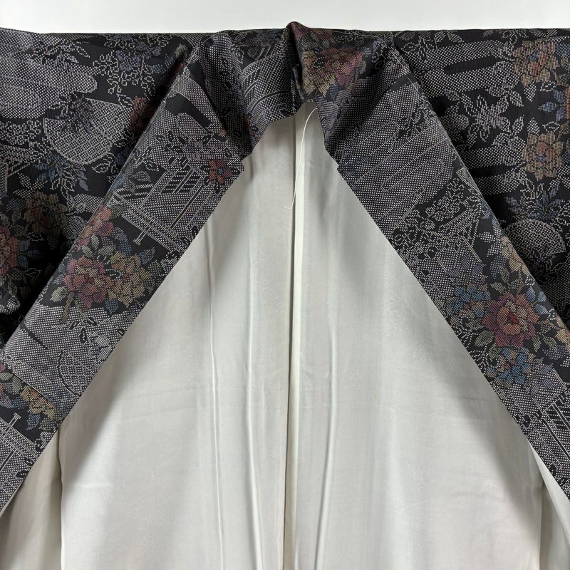 【紬】 黒系 黒 秀品 B 約160cm~約169cm 裄丈67cm-68cm (L)size 袖丈49cm 9990-29990 五万以下