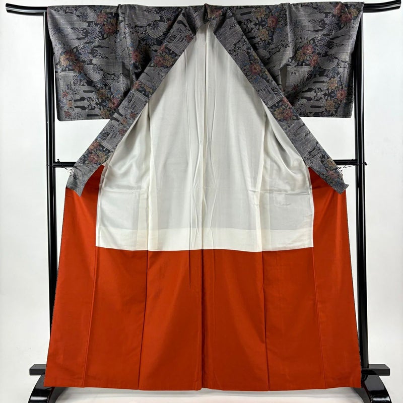 【着物ランク】秀品 【素材】正絹 【身丈】約166cm 【裄丈】約68cm 【袖丈】約49.5cm 【袖幅】約35cm 【前幅】約23cm 【後幅】約28.5cm 【サイズ】L 【着物仕立て】袷 【着用時期】10~5月 【帯丈2】約362.5cm 【帯幅2】約30.5cm 【状態ランク】ランクB 【着物着用シーン】気軽なパーティー、観劇、食事会、正月、気軽なお茶会、街着