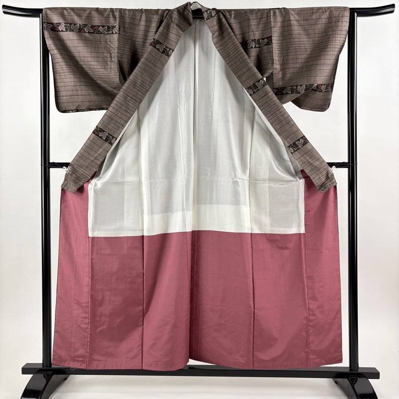 【紬】 茶系 焦茶色 秀品 A 約150cm~約159cm 裄丈63cm-64cm (M)size 袖丈46cm以下 7990-9980 美品 二万以下