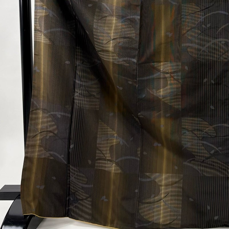 【着物ランク】秀品 【素材】正絹 【身丈】約170cm 【裄丈】約67cm 【袖丈】約48cm 【袖幅】約35cm 【前幅】約24.5cm 【後幅】約30.5cm 【サイズ】M 【着物仕立て】袷 【着用時期】10~5月 【状態ランク】ランクB 【着物着用シーン】気軽なパーティー、観劇、食事会、正月、気軽なお茶会、街着