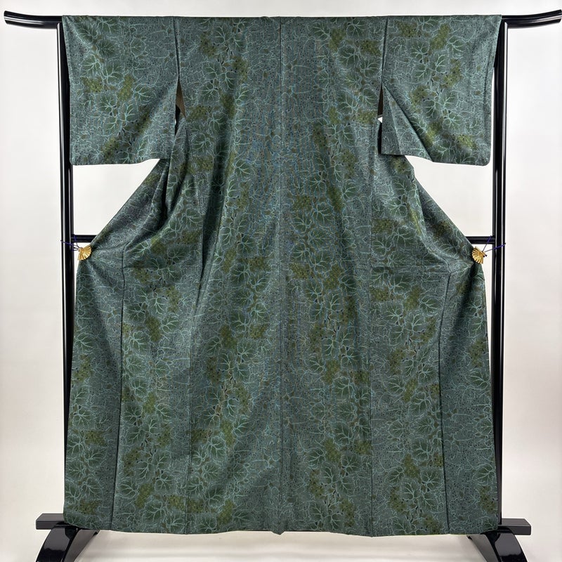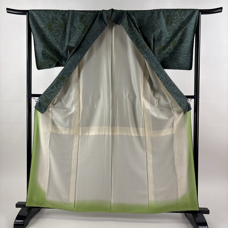 【紬】 緑系 緑 秀品 C 約160cm~約169cm 裄丈63cm-64cm (S)size 袖丈47cm 4000-7980 二万以下