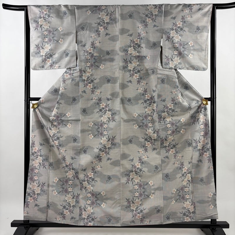 【紬】 灰色系 灰色 秀品 C 約160cm~約169cm 裄丈65cm (M)size 袖丈48cm 4000-7980 二万以下