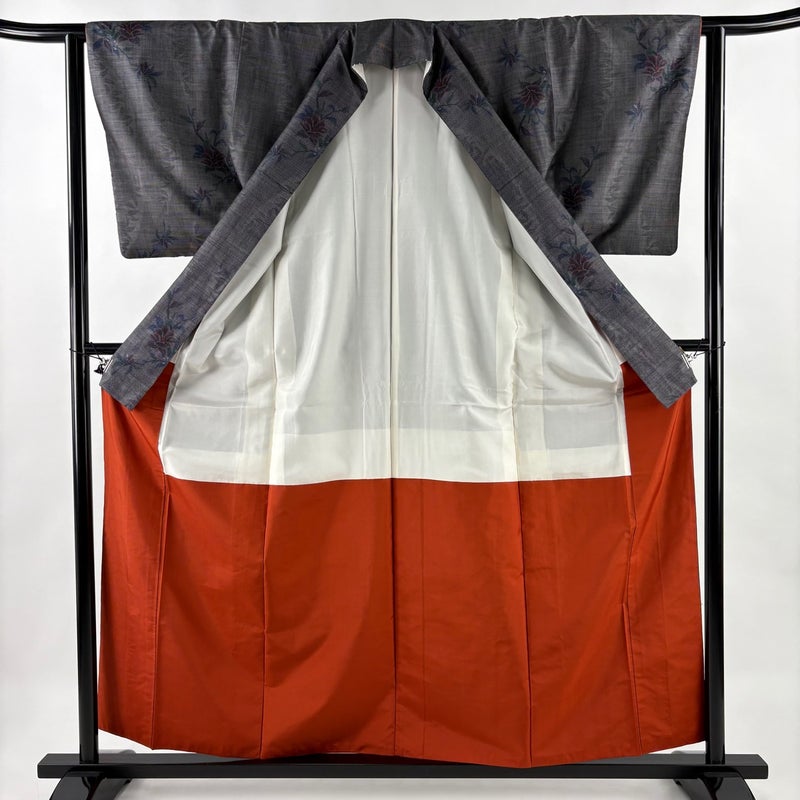 【紬】 灰色系 黒灰 秀品 A 約160cm~約169cm 裄丈62cm以下 (S)size 袖丈49cm 7990-9980 美品 二万以下