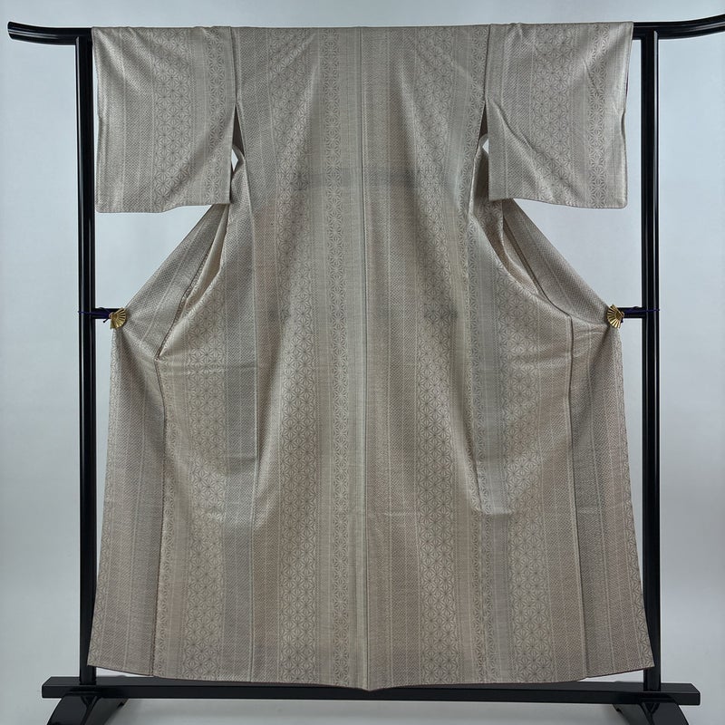 【紬】 白系 ベージュ 秀品 A 約150cm~約159cm 裄丈62cm以下 (S)size 袖丈46cm以下 7990-9980 美品 二万以下