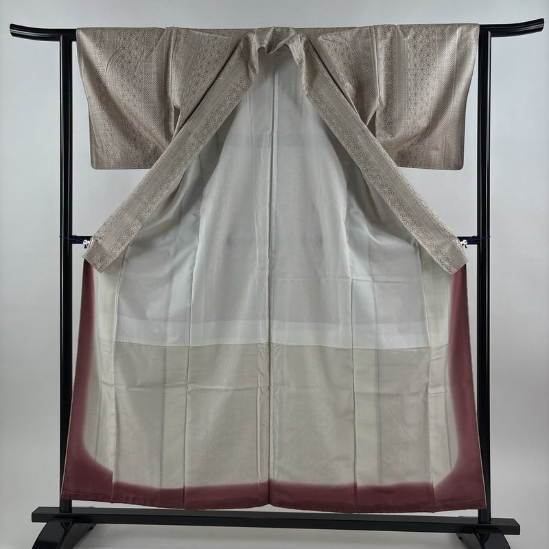 【着物ランク】秀品 【素材】正絹 【身丈】約157cm 【裄丈】約62cm 【袖丈】約45.5cm 【袖幅】約32cm 【前幅】約24cm 【後幅】約28.5cm 【サイズ】S 【着物仕立て】袷 【着用時期】10~5月 【状態ランク】ランクA 【着物着用シーン】気軽なパーティー、観劇、食事会、正月、気軽なお茶会、街着