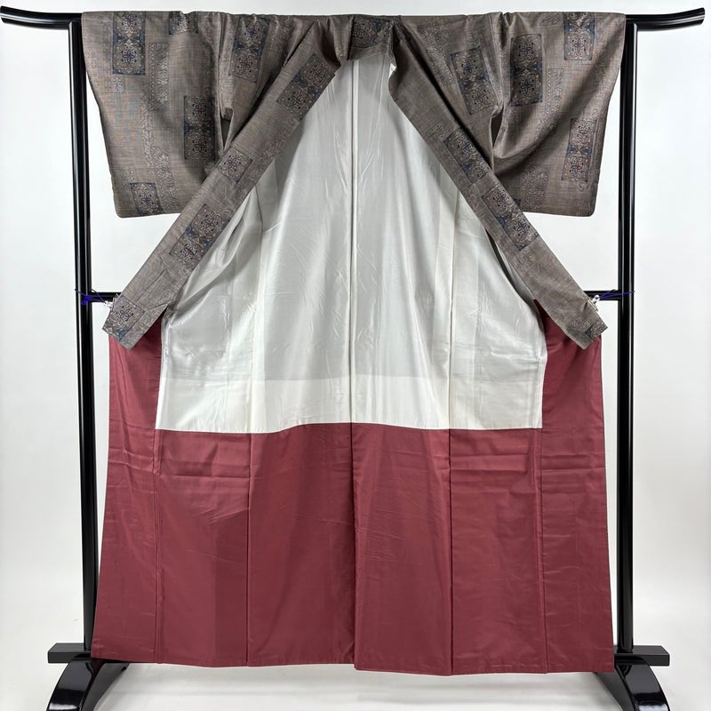 【紬】 灰色系 灰茶 秀品 B 約160cm~約169cm 裄丈63cm-64cm (M)size 袖丈48cm 4000-7980 二万以下
