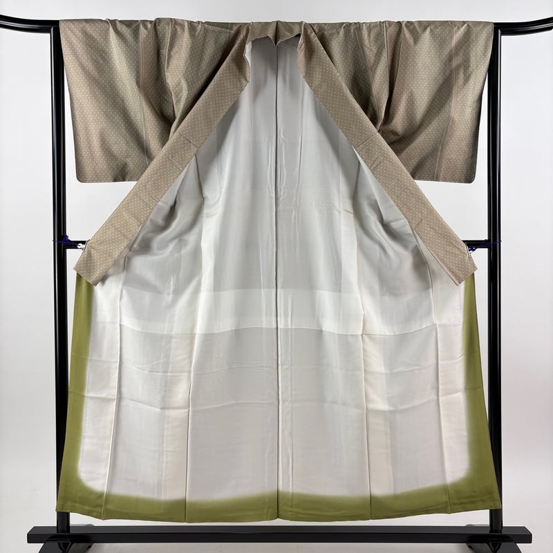 【着物ランク】秀品 【素材】正絹 【身丈】約155cm 【裄丈】約65.5cm 【袖丈】約49cm 【袖幅】約34cm 【前幅】約24cm 【後幅】約29.5cm 【サイズ】M 【着物仕立て】袷 【着用時期】10~5月 【状態ランク】ランクA 【着物着用シーン】気軽なパーティー、観劇、食事会、正月、気軽なお茶会、街着